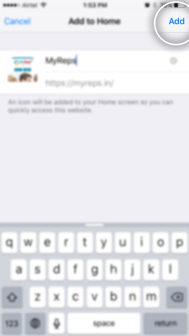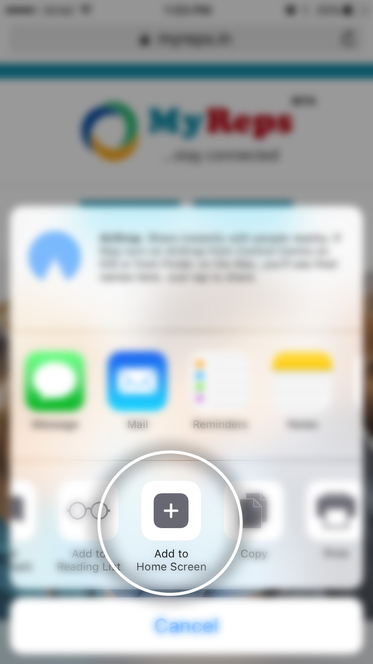 Select Add to Home Screen option
